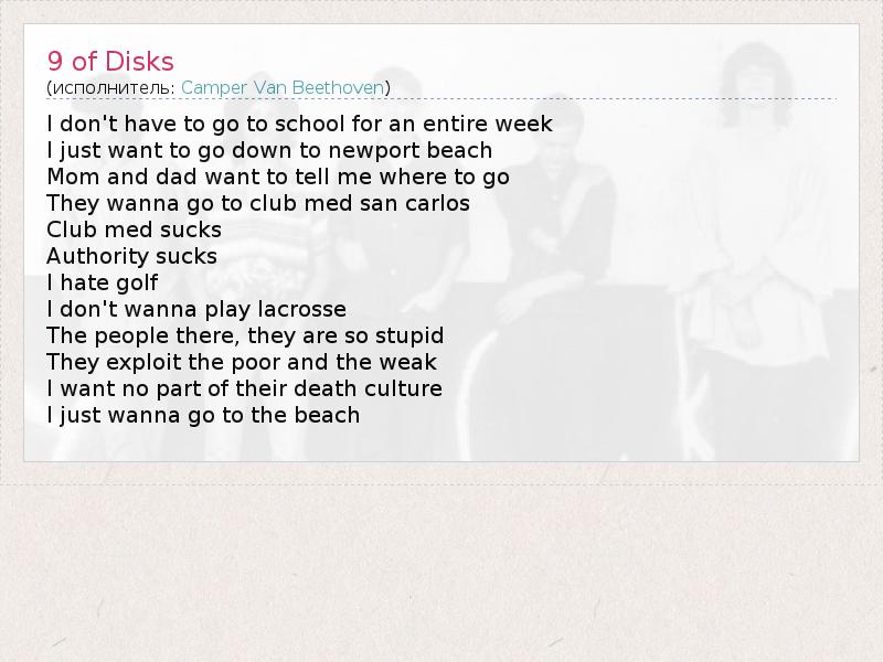 А как ты думаешь, о чем песня "9 of Disks" ?