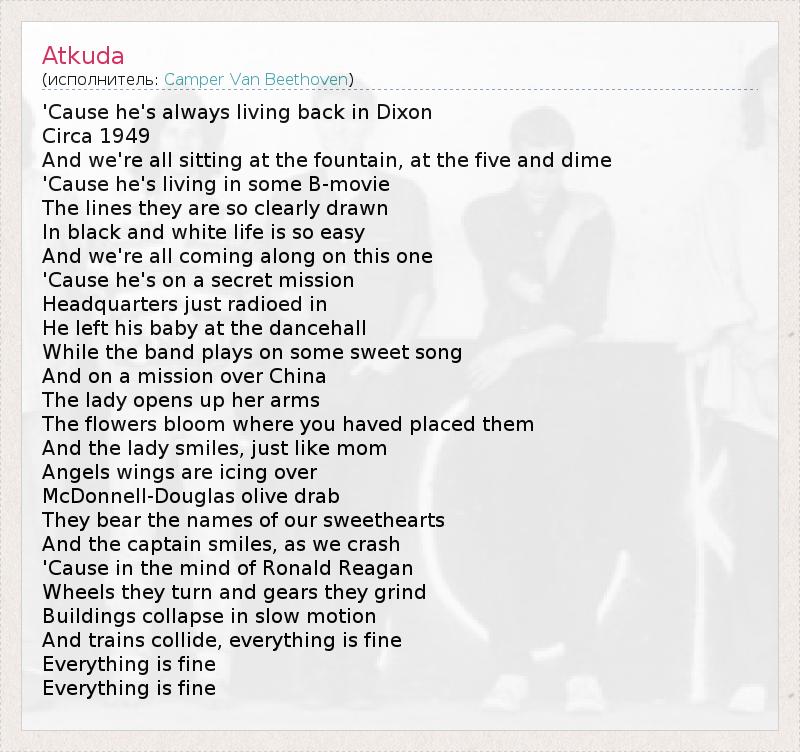 Это интересно:Идея, стоявшая за проектом Camper Van Beethoven, была одновременно проста и изящна музыка группы должна была раздражать коллег по цеху, относившихся к себе и своему творчеству преувеличенно серьезно. Пущенные на фоне кухонных шумов вкрадчивые мандолина и скрипка, в самом деле действовали на не слишком крепкие нервы - особенно если учесть, что звучали они у Camper Van Beethoven как аккомпанемент к стилизованному... продолжение
