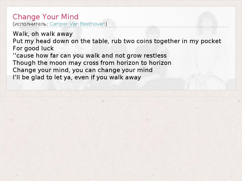 А как ты думаешь, о чем песня "Change Your Mind" ?