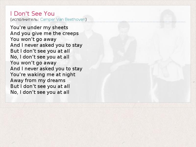 А как ты думаешь, о чем песня "I Don't See You" ?