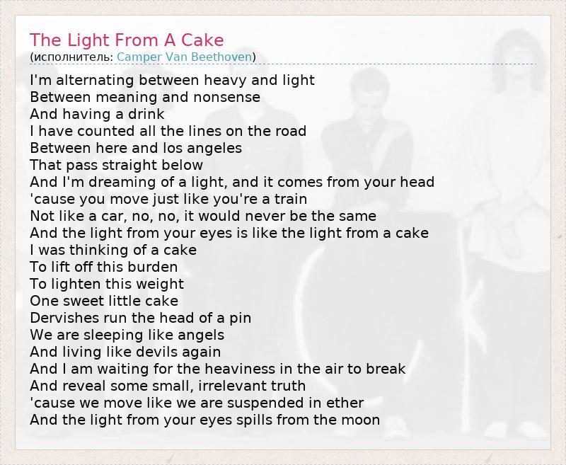 А как ты думаешь, о чем песня "The Light From A Cake" ?