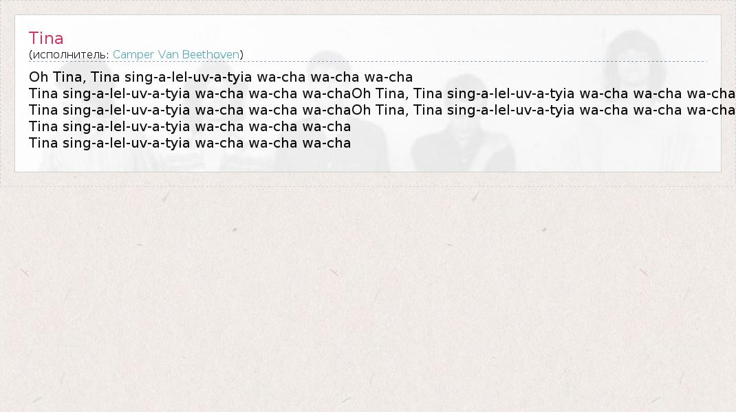 Tina sing-a-lel-uv-a-tyia wa-cha wa-cha wa-chaOh Tina, Tina sing-a-lel-uv-a-tyia wa-cha wa-cha wa-cha