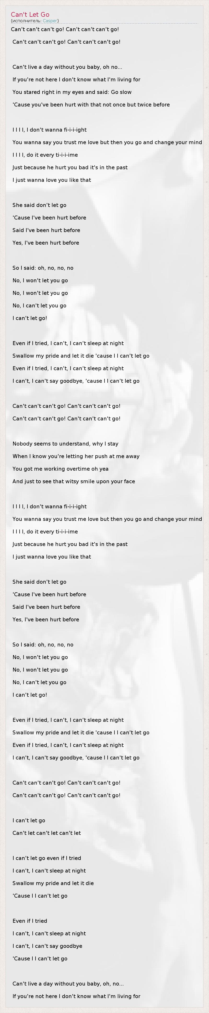 А как ты думаешь, о чем песня "Can't Let Go" ?
