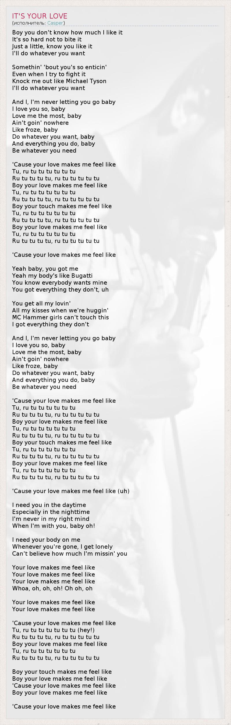 А как ты думаешь, о чем песня "IT'S YOUR LOVE" ?
