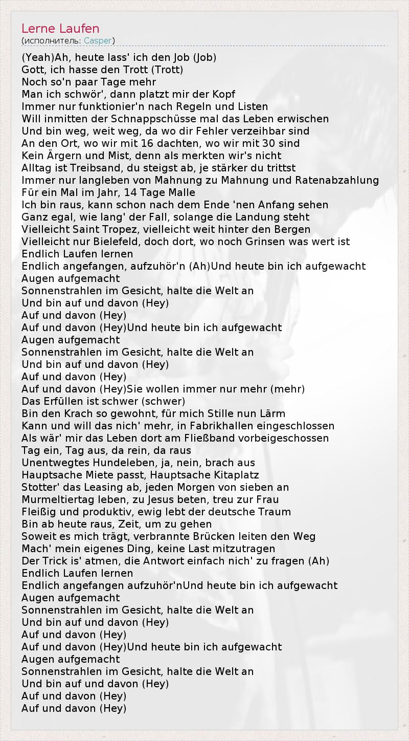 А как ты думаешь, о чем песня "Lerne Laufen" ?