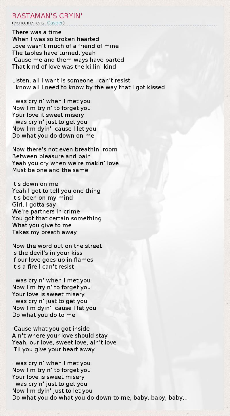 А как ты думаешь, о чем песня "RASTAMAN'S CRYIN'" ?