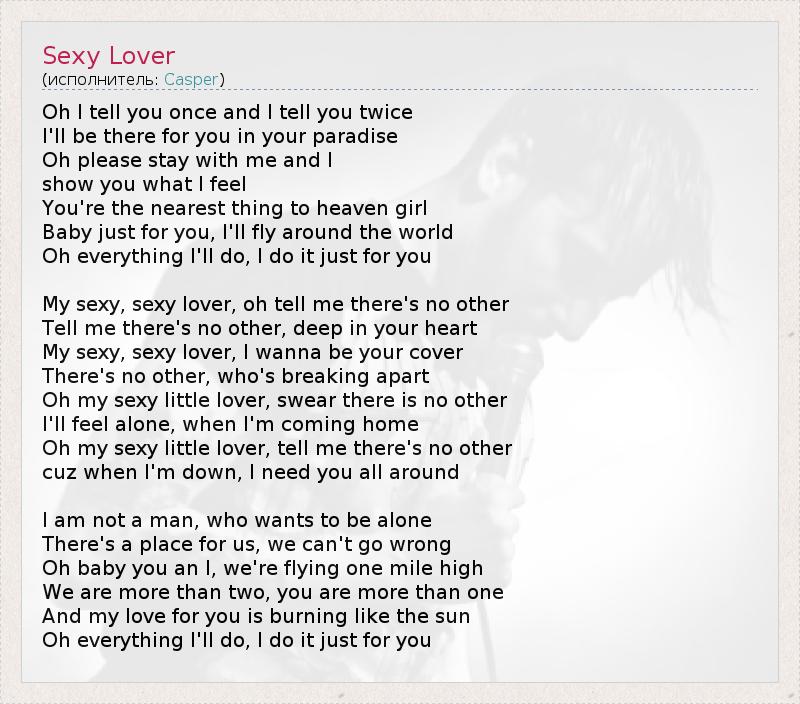 Oh I tell you once and I tell you twice I'll be there for you in your paradise Oh please stay with me and I show you what I feel You're the nearest thing to heaven girl Baby just for you, I'll fly around the world Oh everything I'll do, I do it just for you My sexy, sexy lover, oh tell me there's no other Tell me there's no other, deep in your heart My sexy, sexy lover, I wanna be your cover There's no other, who's breaking apart Oh my sexy little lover, swear there is no other I'll feel alone, when I'm coming home Oh my sexy little lover, tell me there's no other cuz when I'm down, I need you all around I am not a man, who wants to be alone There's a place for us, we can't go wrong Oh baby you an I, we're flying one mile high We are more than two, you are more than one And my love for you is burning like the sun Oh everything I'll do, I do it just for you