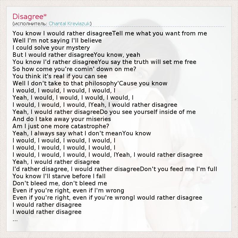 I'd rather disagree, I would rather disagreeDon't you feed me I'm full