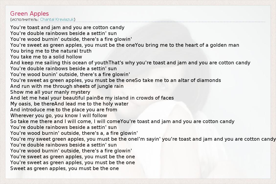 You're sweet as green apples, you must be the oneYou bring me to the heart of a golden man