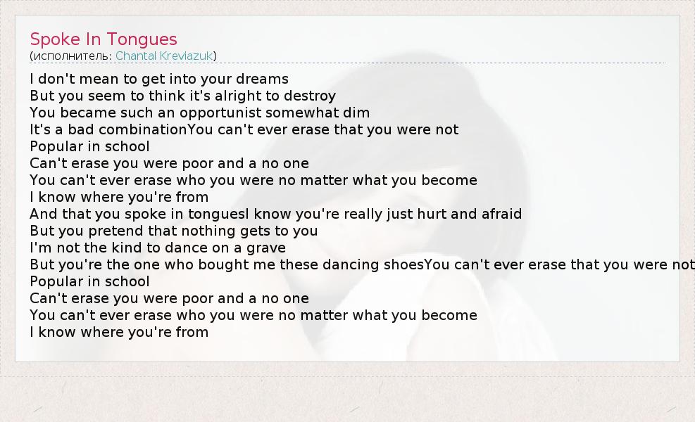 А как ты думаешь, о чем песня "Spoke In Tongues" ?