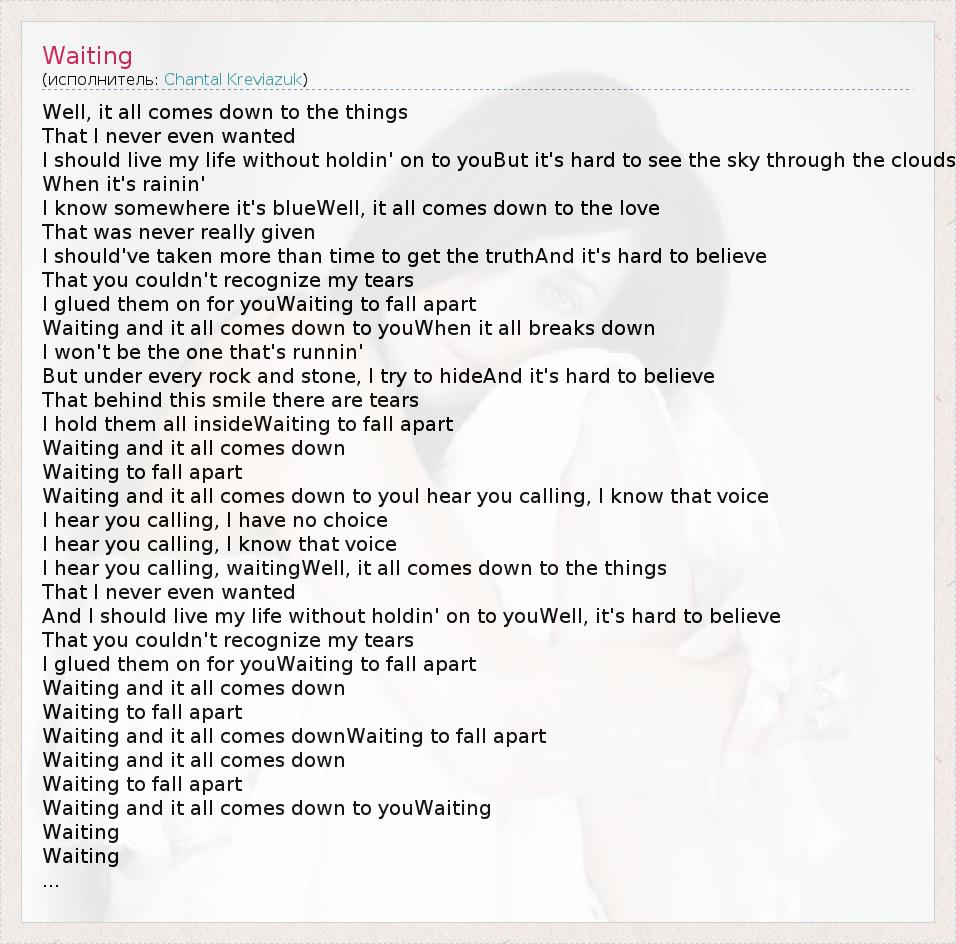 Waiting and it all comes down to youI hear you calling, I know that voice