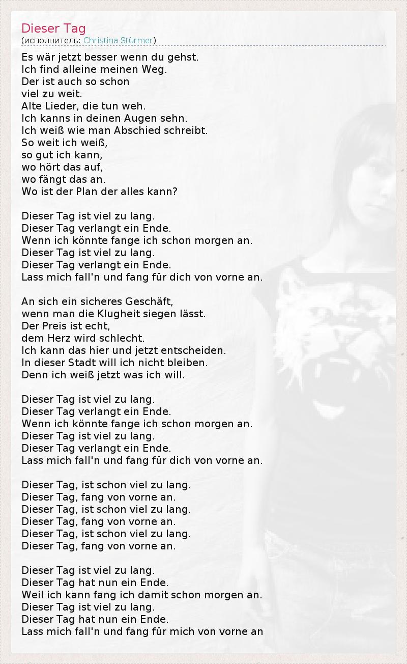 А как ты думаешь, о чем песня "Dieser Tag" ?