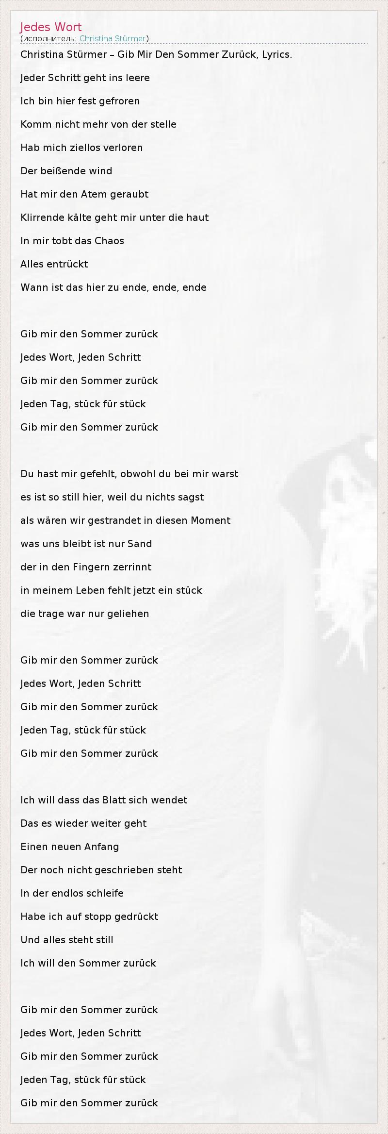 Кристина Штюрмер - Gib Мир Den Sommer Zurück , тексты песен.
