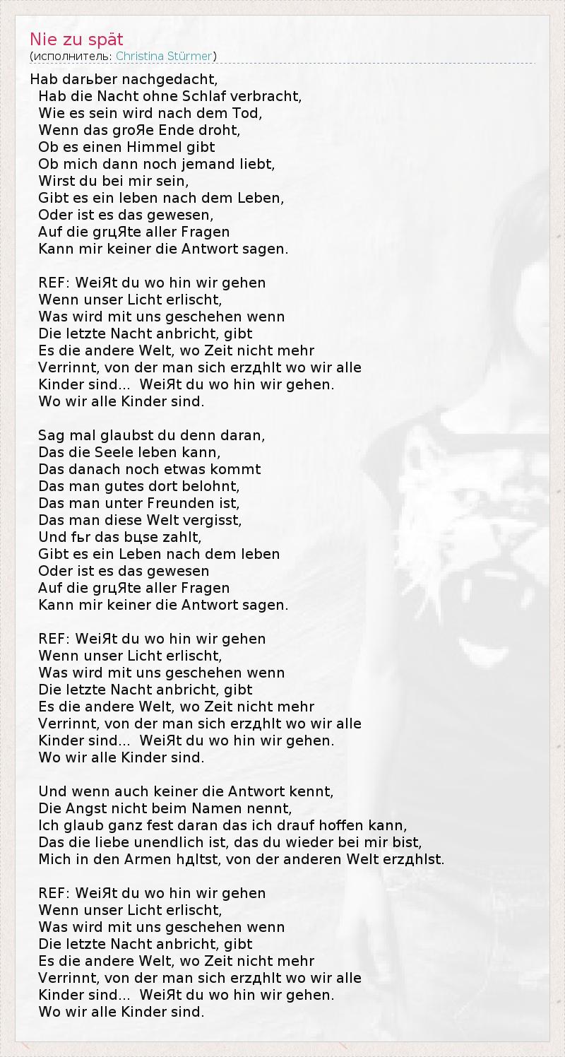 А как ты думаешь, о чем песня "Nie zu spät" ?