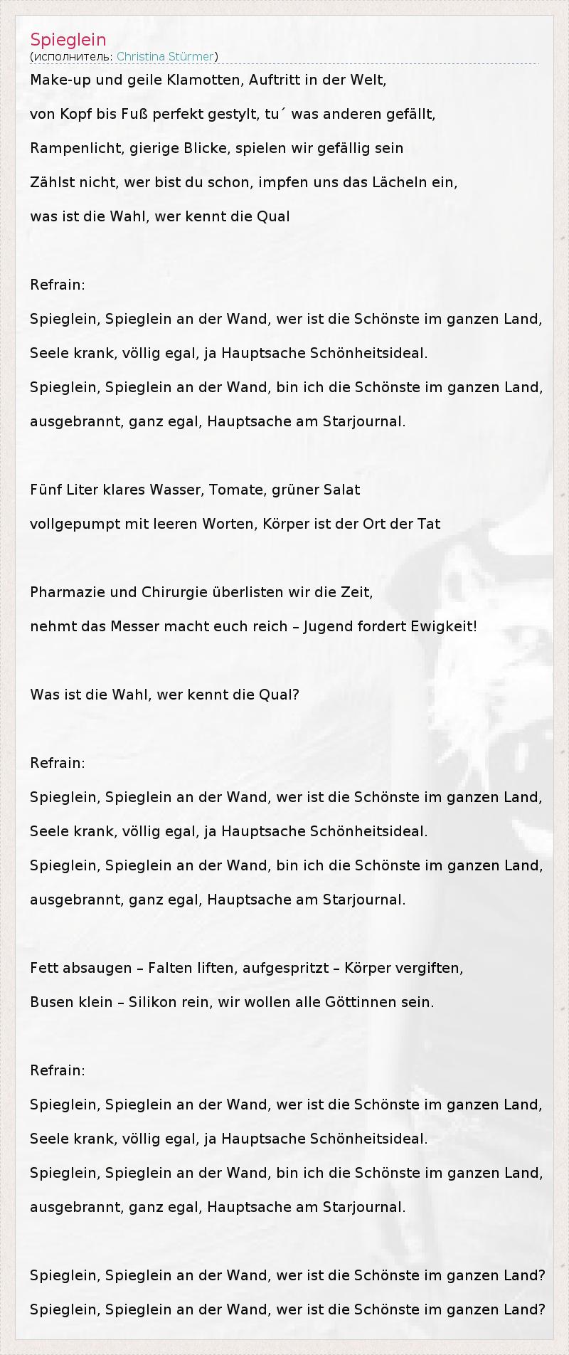Spieglein, Spieglein an der Wand, wer ist die Schönste im ganzen Land,