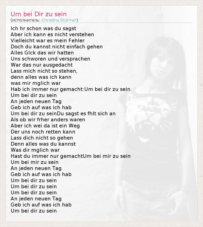 А как ты думаешь, о чем песня "Um bei Dir zu sein" ?