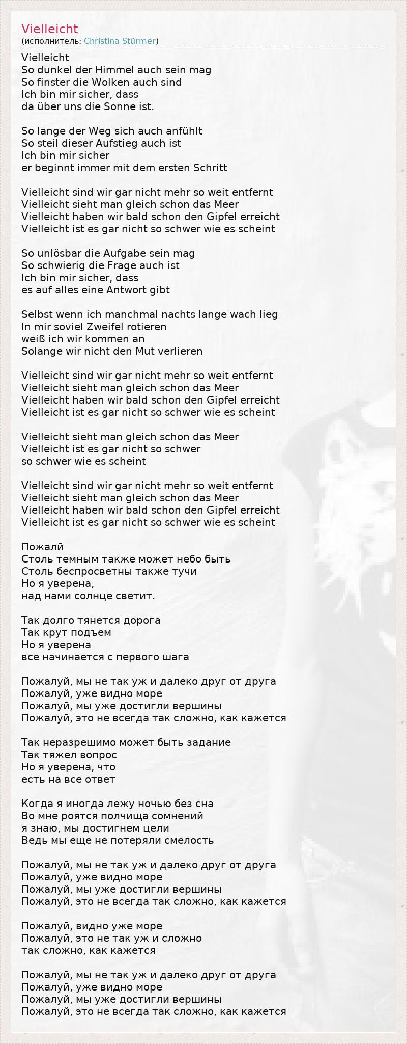 А как ты думаешь, о чем песня "Vielleicht" ?