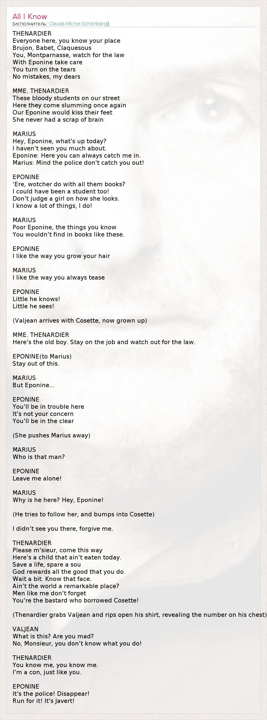 (Thenardier grabs Valjean and rips open his shirt, revealing the number on his chest)