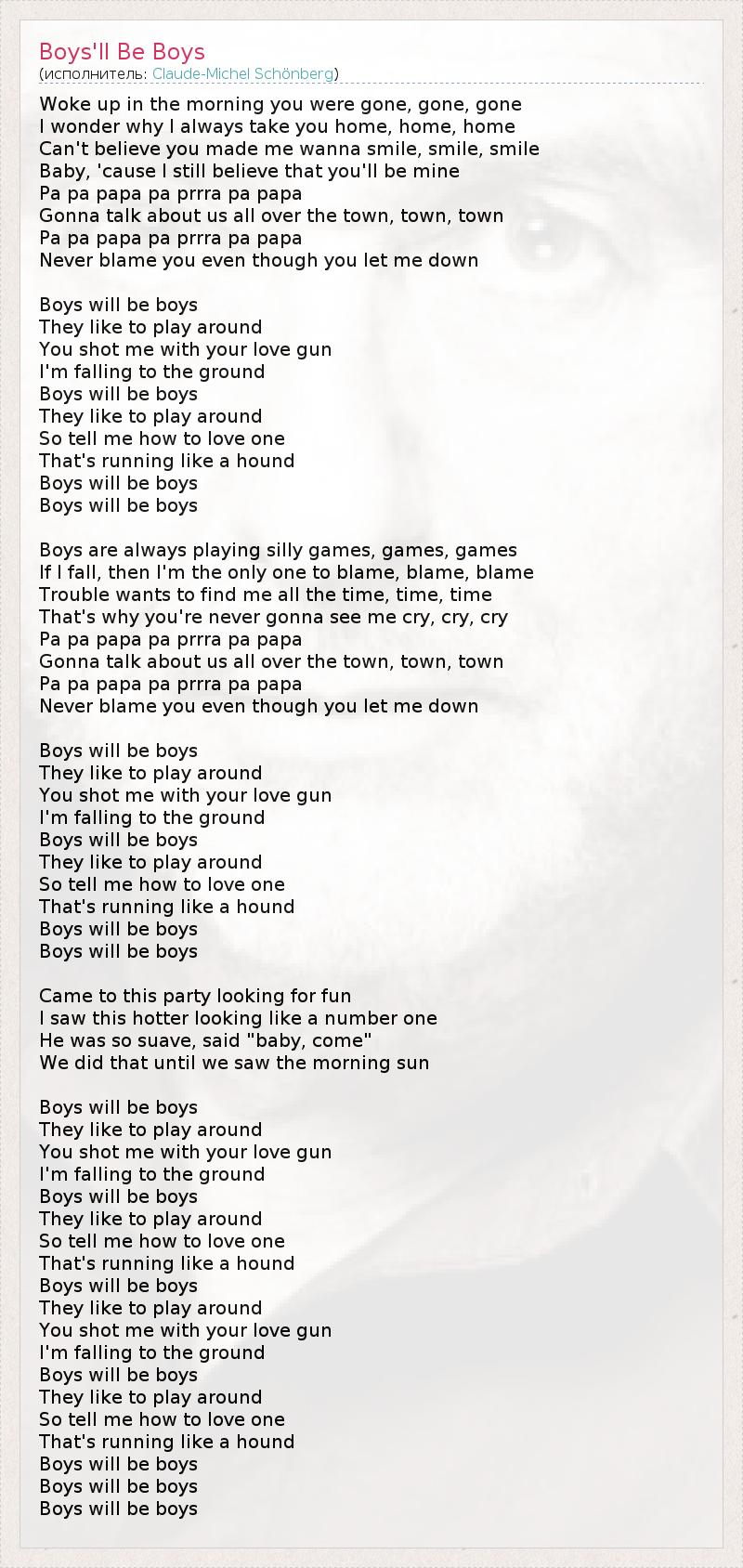 А как ты думаешь, о чем песня "Boys'll Be Boys" ?