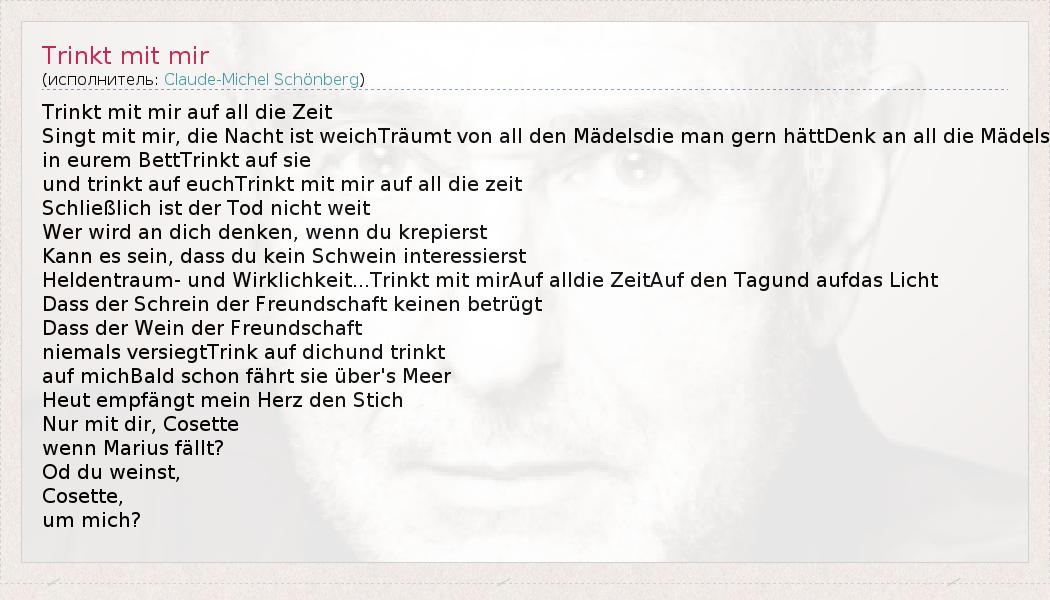 А как ты думаешь, о чем песня "Trinkt mit mir" ?