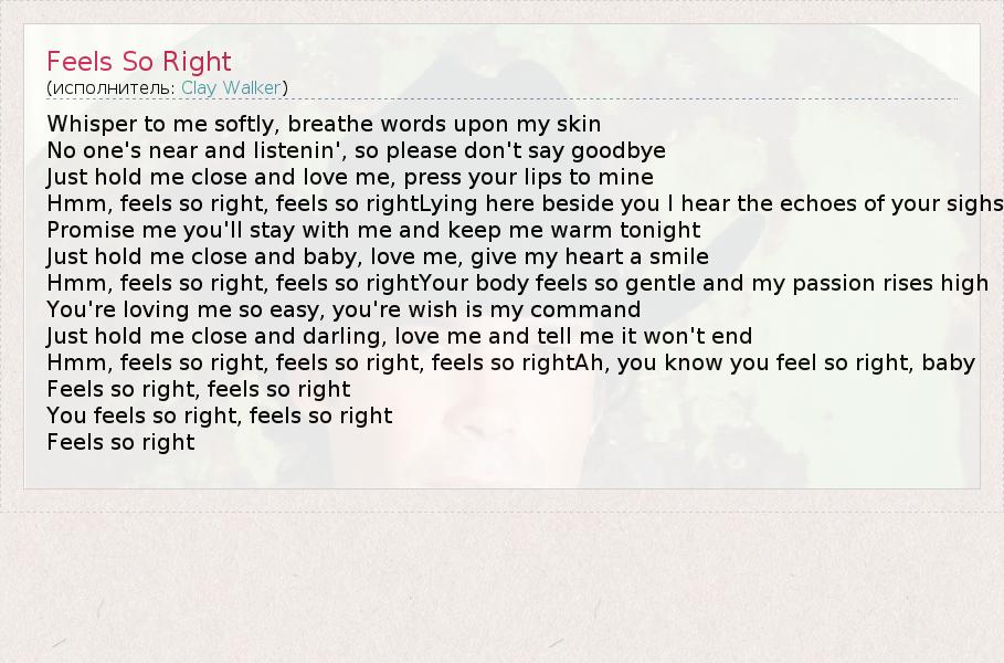 А как ты думаешь, о чем песня "Feels So Right" ?