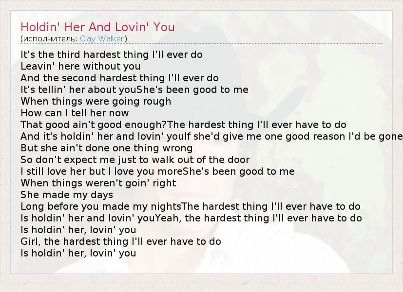 А как ты думаешь, о чем песня "Holdin' Her And Lovin' You" ?
