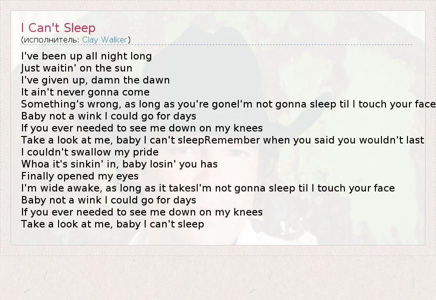 А как ты думаешь, о чем песня "I Can't Sleep" ?
