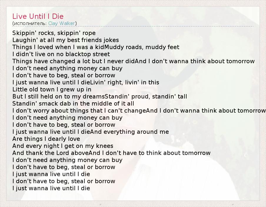 А как ты думаешь, о чем песня "Live Until I Die" ?