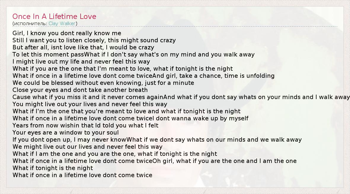 ГлавнаяИсполнителиClay WalkerOnce In A Lifetime Love