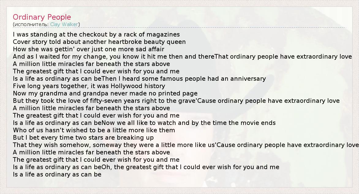 А как ты думаешь, о чем песня "Ordinary People" ?