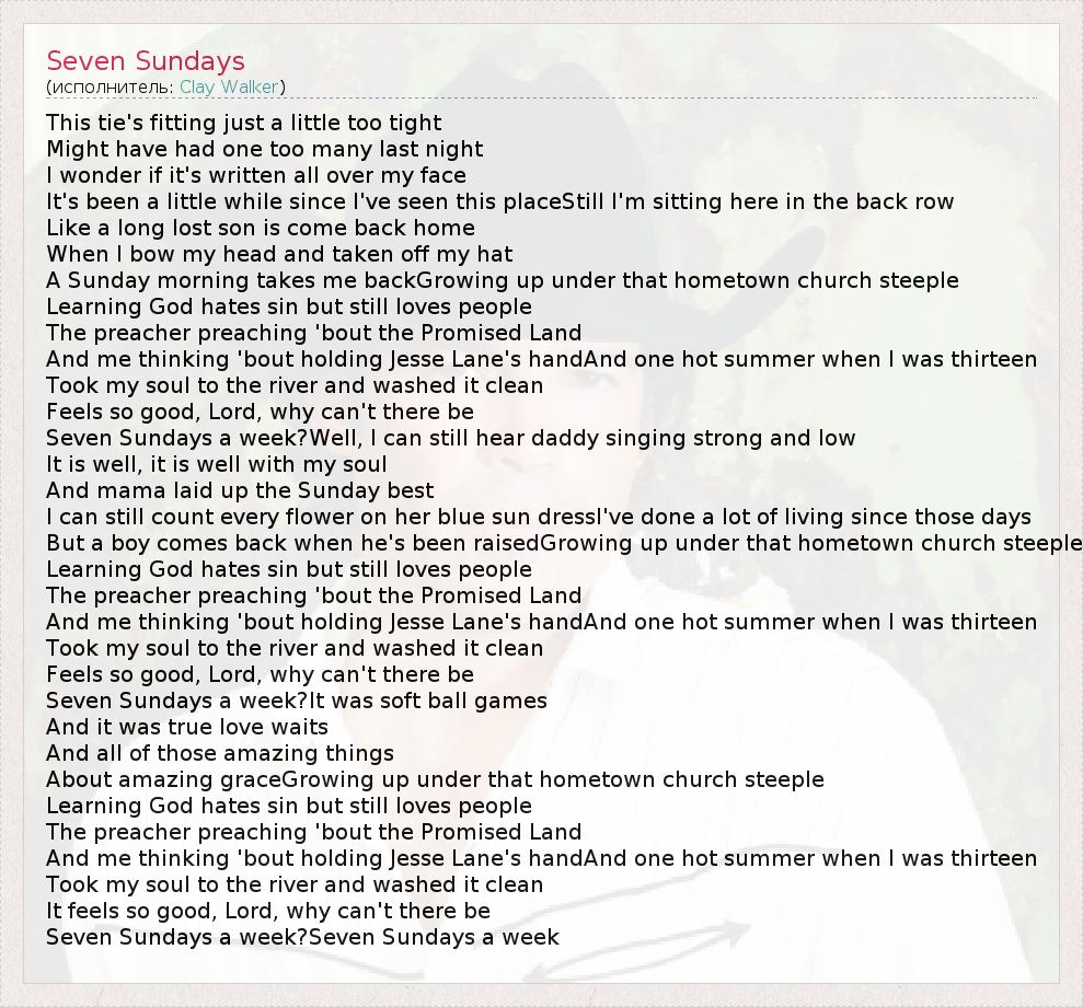 Seven Sundays a week?Well, I can still hear daddy singing strong and low