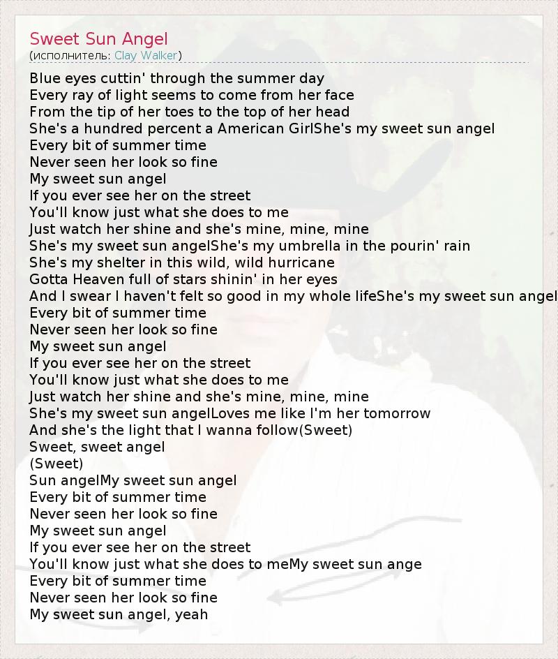 She's my sweet sun angelLoves me like I'm her tomorrow