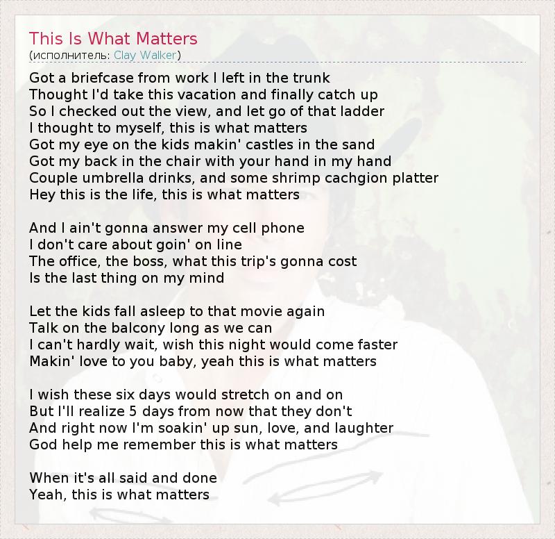 А как ты думаешь, о чем песня "This Is What Matters" ?