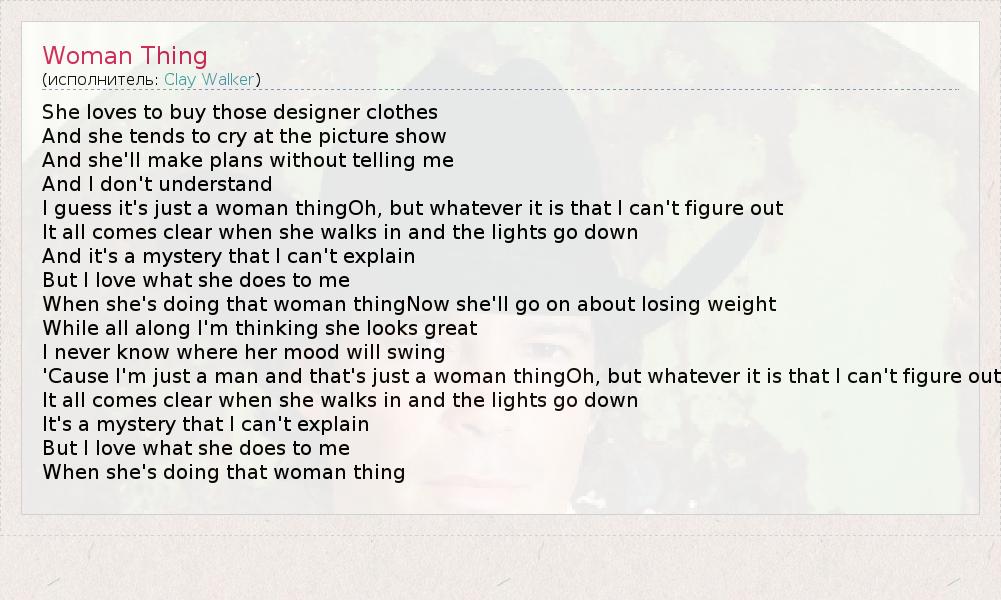 А как ты думаешь, о чем песня "Woman Thing" ?