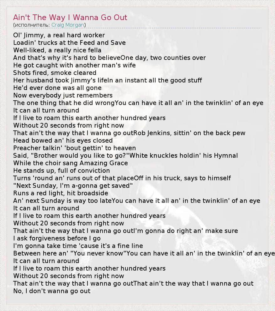 ГлавнаяИсполнителиCraig MorganAin't The Way I Wanna Go Out