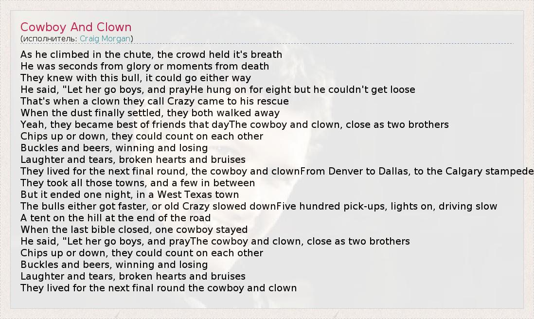 А как ты думаешь, о чем песня "Cowboy And Clown" ?