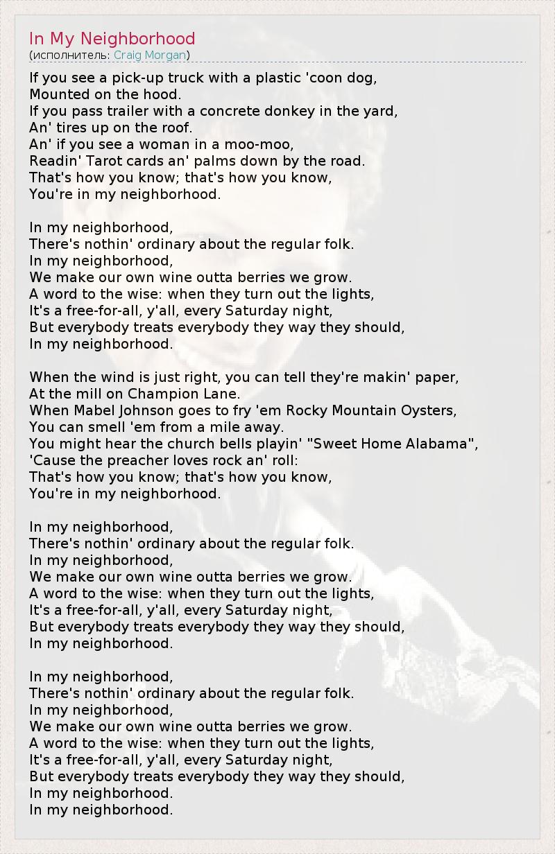 А как ты думаешь, о чем песня "In My Neighborhood" ?