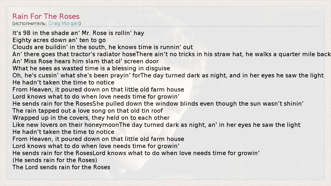 А как ты думаешь, о чем песня "Rain For The Roses" ?