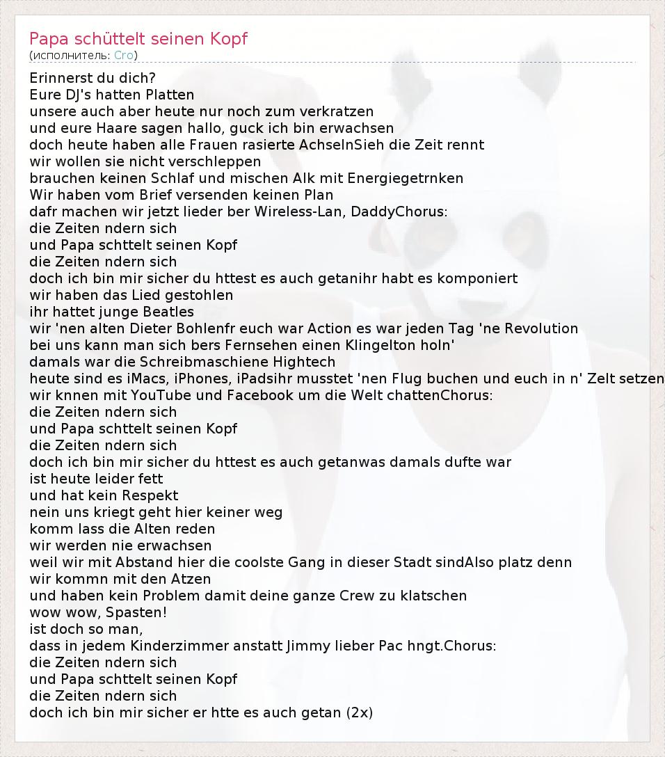 ГлавнаяИсполнителиCroPapa schüttelt seinen Kopf
