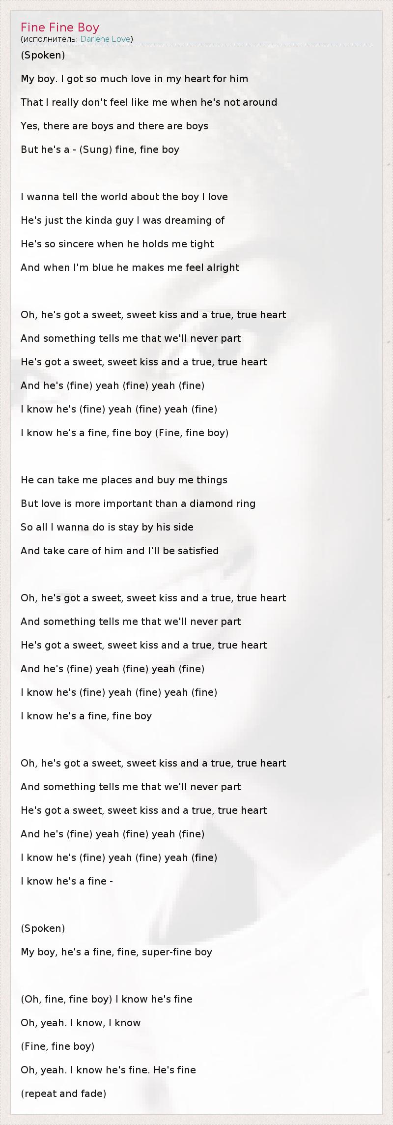 А как ты думаешь, о чем песня "Fine Fine Boy" ?