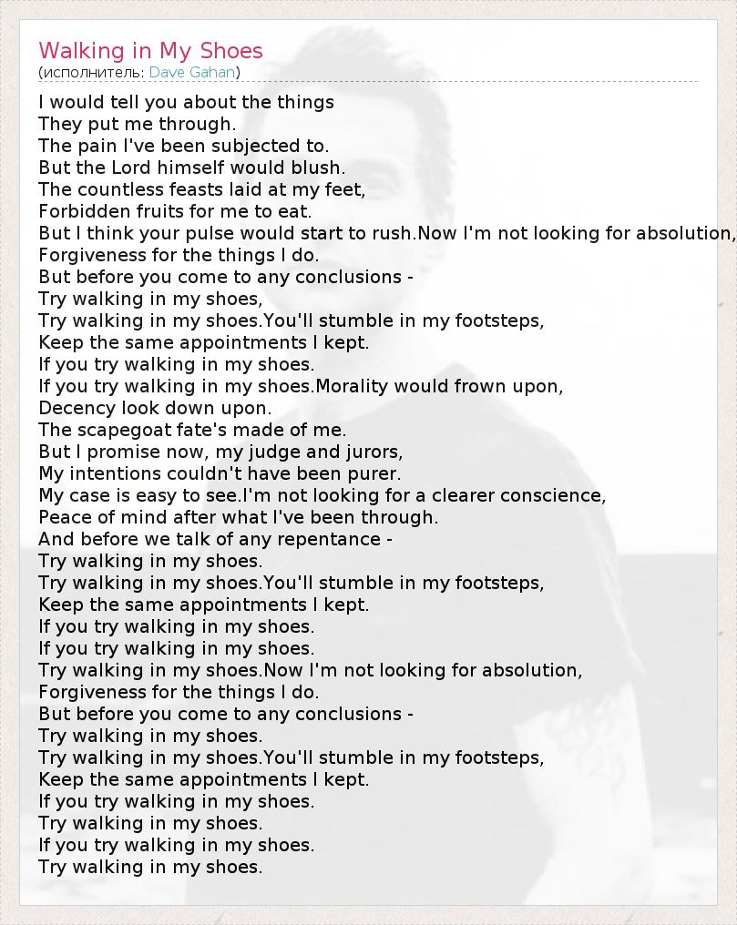 А как ты думаешь, о чем песня "Walking in My Shoes" ?