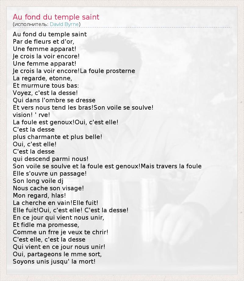 ГлавнаяИсполнителиDavid ByrneAu fond du temple saint