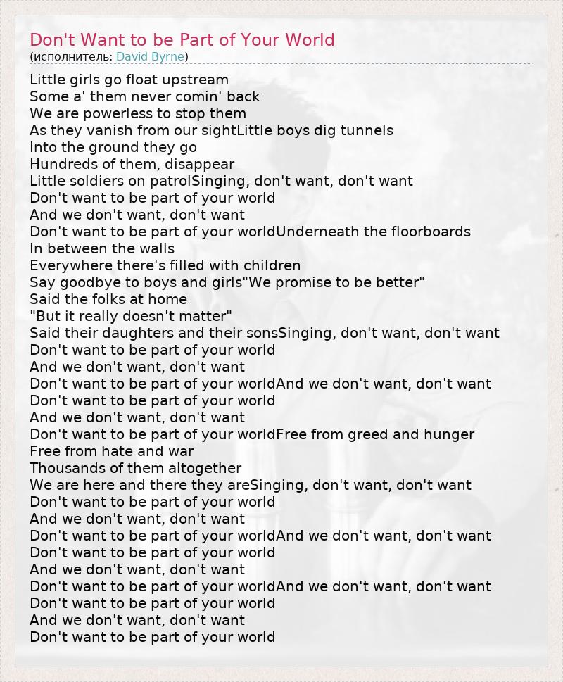 А как ты думаешь, о чем песня "Don't Want to be Part of Your World" ?
