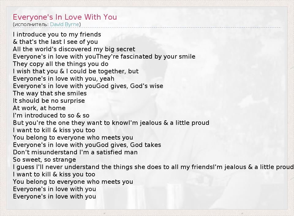 ГлавнаяИсполнителиDavid ByrneEveryone's In Love With You