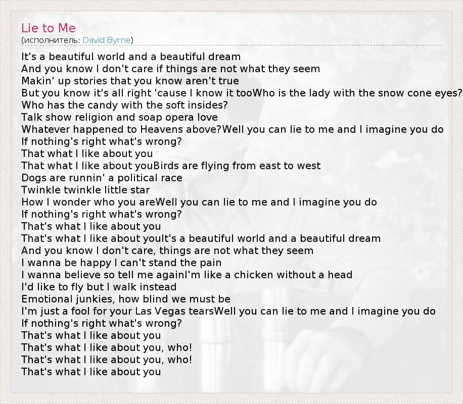 А как ты думаешь, о чем песня "Lie to Me" ?