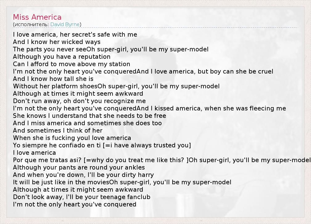 I'm not the only heart you've conqueredAnd I love america, but boy can she be cruel