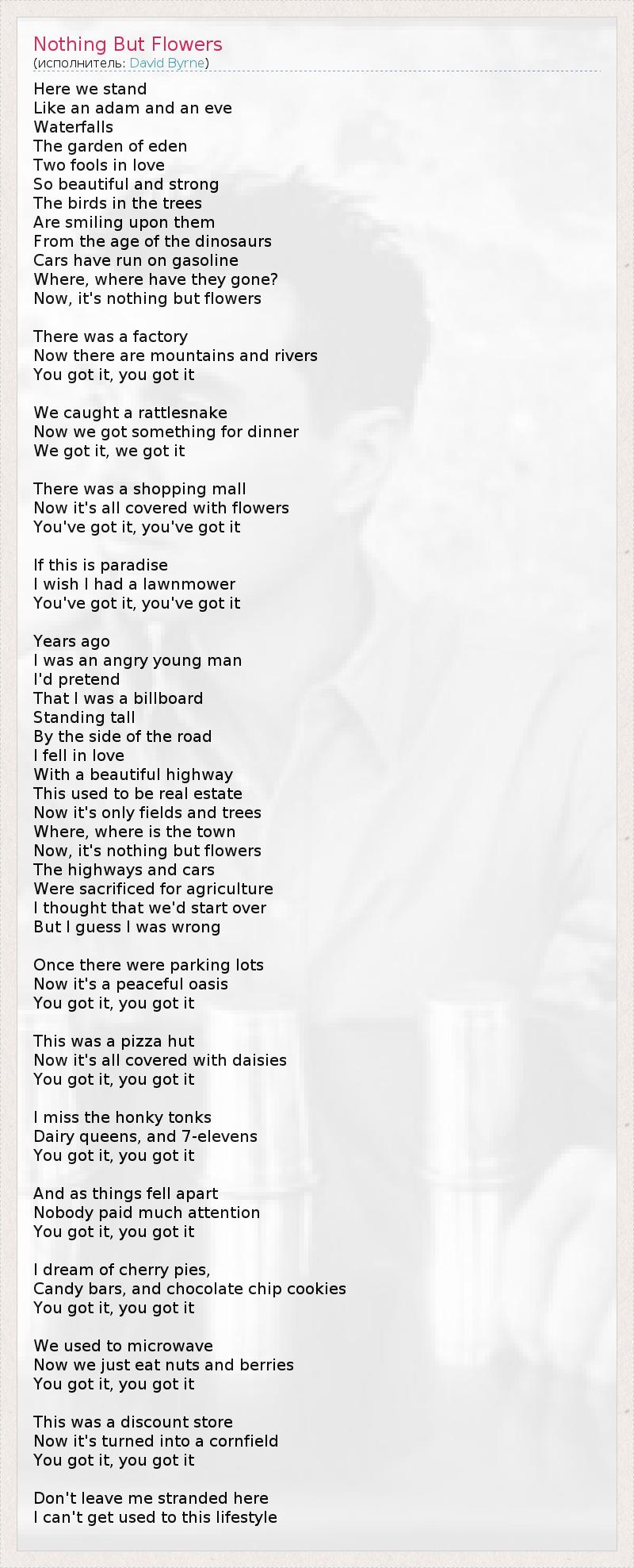 А как ты думаешь, о чем песня "Nothing But Flowers" ?
