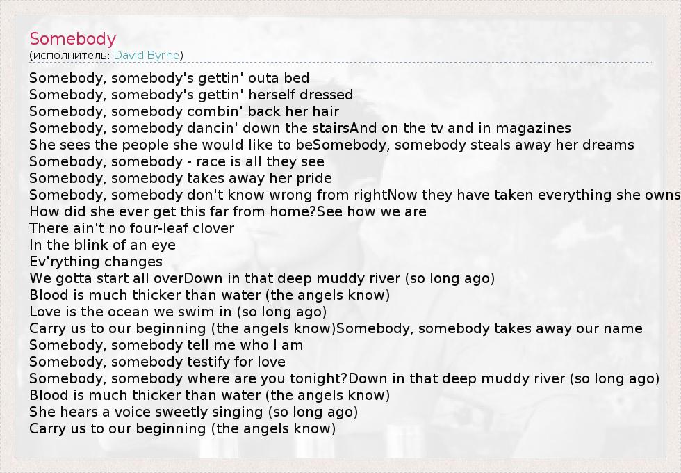 Somebody, somebody where are you tonight?Down in that deep muddy river (so long ago)