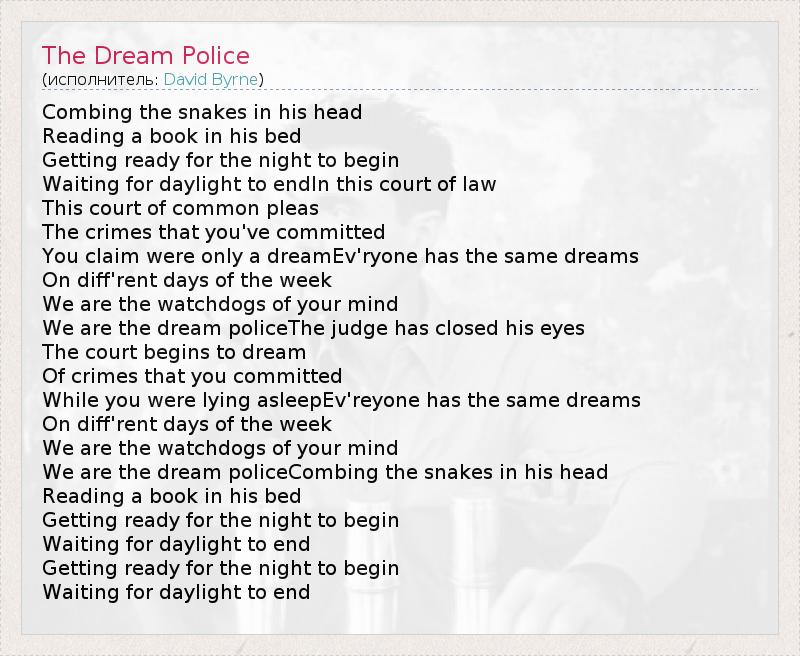 А как ты думаешь, о чем песня "The Dream Police" ?