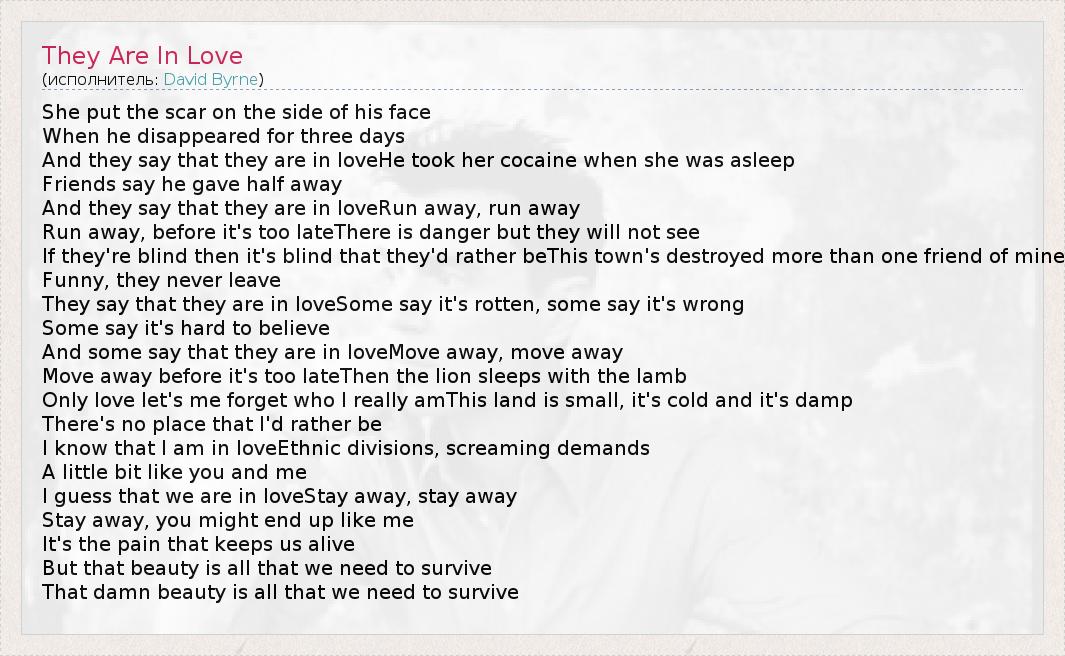 А как ты думаешь, о чем песня "They Are In Love" ?